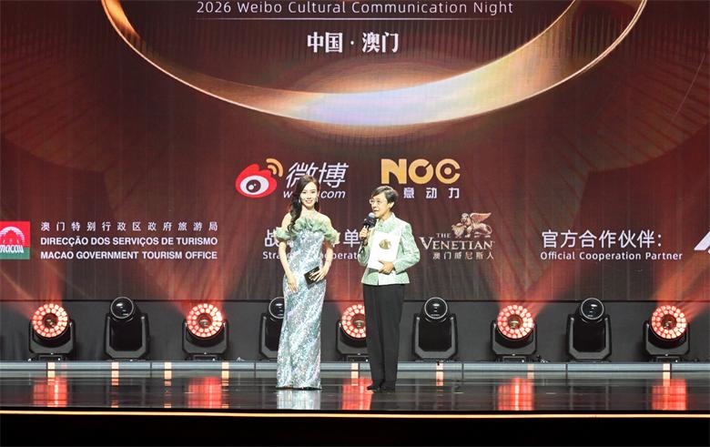 【本報訊】2026年4月11日“2026微博文化交流之夜-中國澳門站”在澳門·威尼斯人綜藝館盛大啟幕,本次盛典由微博主辦,新意動力承辦,金沙中國為戰略合作單位,澳門旅遊局為支持單位,以“金聲匯流年・鎏光共潮生”為核心主題,立足澳門中西文化交匯特色,以文化為載體、以微博為樞紐,搭建起中華文化走向世界、世界文明互鑒交融的重要平台,為中華文化國際傳播注入新活力、開闢新路徑。現場彙聚近百名政商精英、文體明星、文化名人,共赴這場兼具品質與影響力的文化盛宴。
