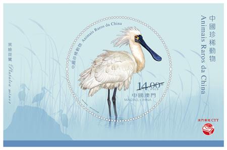 郵電局是次獲獎作品“中國珍稀動物”小型張,選取國家重點保護野生動物——黑臉琵鷺為創作核心。作品融合寫實與寫意的藝術表現形式,充分發揮雕刻版印刷特有的線條張力。透過精細的深淺雕刻,不僅精準勾勒出黑臉琵鷺羽色潔白的絲滑觸感與層次變化,更賦予其靈動神態,展現出躍然紙上的立體視覺衝擊。同時,作品細膩描繪黑臉琵鷺在自然環境中的生動姿態,將藝術美感延伸為對物種保育的呼籲與深切關懷。