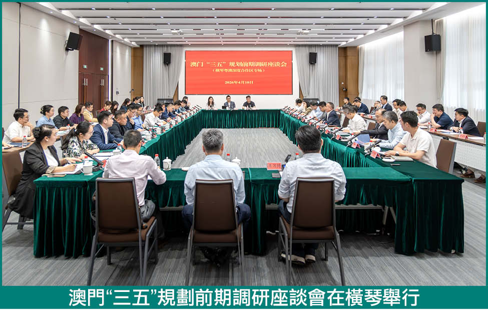 【本報訊】4月10日下午,澳門“三五”規劃前期調研座談會(深合區專場)在橫琴舉行。會議由合作區執委會副主任李翀主持,澳門政策研究和區域發展局局長張作文率團出席,就編製《澳門特別行政區經濟和社會發展第三個五年規劃(2026—2030)》積極聽取橫琴社會各界意見和建議。來自合作區頭部企業、澳資企業代表,以及在橫琴生活居住、關心支持琴澳發展的澳門市民代表,共同為高水平規劃引領琴澳一體化高質量發展建真言、獻良策。