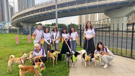 協會義工們講解與犬隻相處的注意事項,並分享一些毛孩背後的獲救故事。隨後,愛心大使在義工指導下,親自帶領狗狗前往附近區域散步。透過輕鬆溫馨的互動,不僅讓狗狗感受到人類的善意,也讓愛心大使們深刻體會到守護生命的重要性。臨別之際,愛心大使向協會捐贈了一批精選狗糧,特別針對老年犬隻的健康需求提供營養支援。
