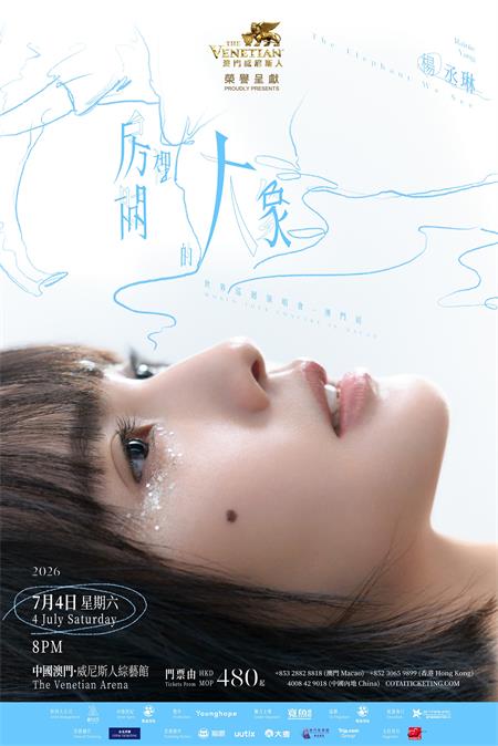 【本報訊】華語流行歌手楊丞琳將於2026年7月4日登陸澳門威尼斯人®的威尼斯人綜藝館,舉辦《房間裡的大象》世界巡迴演唱會-澳門站。門票將於2026年4月24日(星期五)中午12時起在金光票務、貓眼、uutix、大麥網、澳門售票網、攜程同步發售。