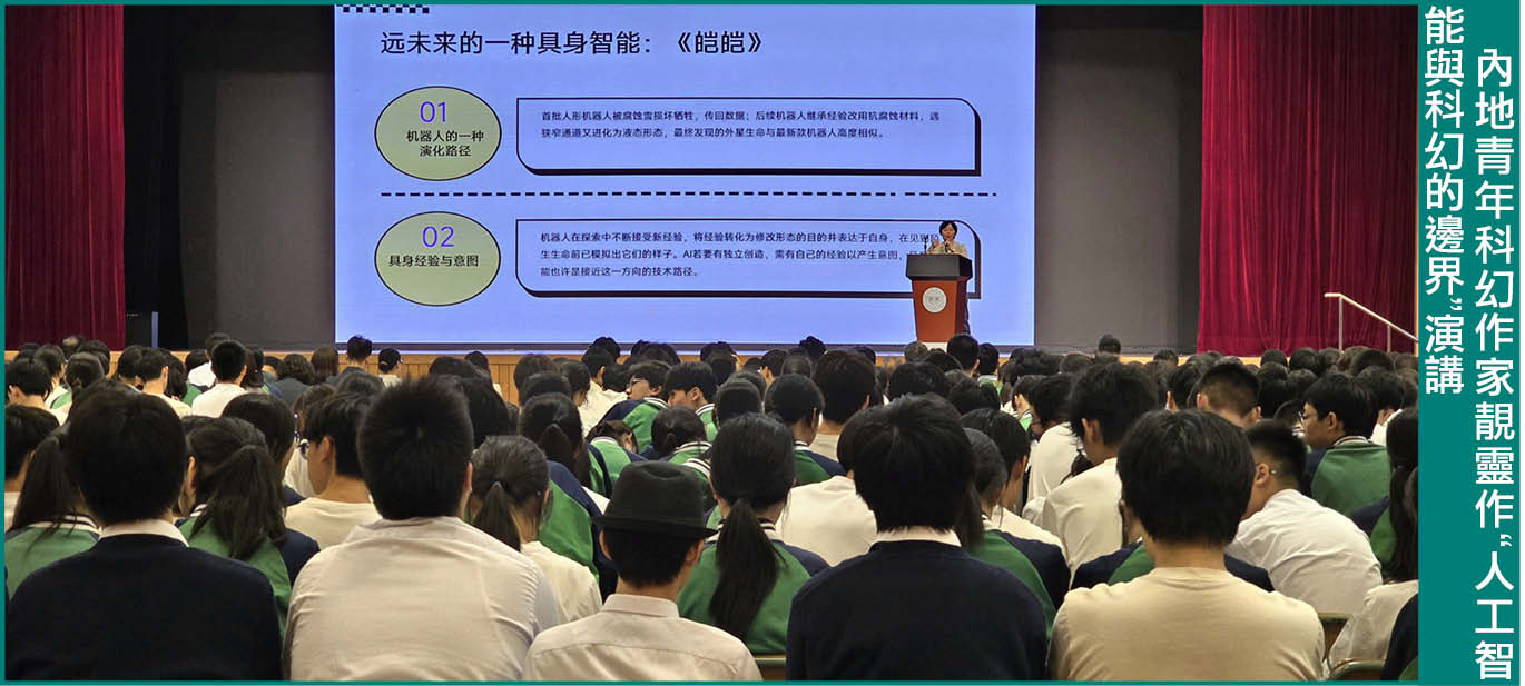 澳門科學館股份有限公司董事長穆欣欣致辭時表示,今年是國家“十五五”規劃開局之年,也是國務院首次設立“全民閱讀活動周”及《全民閱讀促進條例》實施的重要年份。科學館響應國家戰略,於2023年創辦《悅讀科幻之美》科幻文學講堂,以科幻連結科技與人文教育,已成為協同推進創新型人才培養的品牌活動。她感謝教業中學支持,讓活動首次走進中學校園。去年科學館因應國家“人工智能+”部署,啟動“人工智能社區通識教育行動”,堅持“智能向善”理念,引導大眾善用人工智能,認識到人工智能發展須增進人類福祉。作為全國科普教育基地、科學家精神教育基地及中國科技文化場館聯合體成員,科學館始終以落實《全民科學素質行動規劃綱要》為己任。科幻文學是連接科學精神與人文情懷的載體,能激發對未來的想像,培育創新思維與科學素養,讓公眾在閱讀中遇見未來。