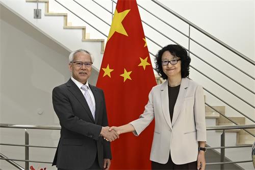 岑浩輝與中國常駐世界貿易組織代表、特命全權大使李詠箑會面。