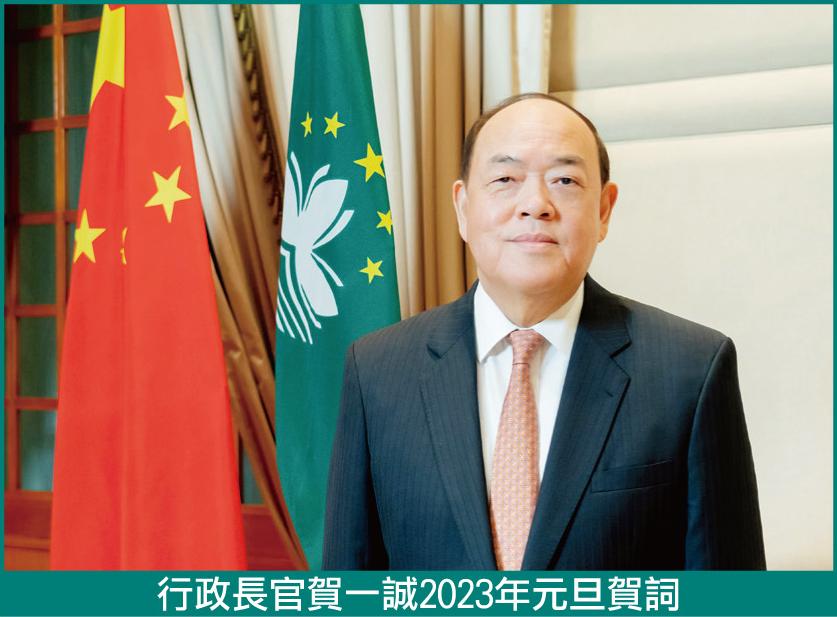 【本報訊】2022年12月31日除夕夜,行政長官賀一誠以“齊心合力向前行 攜手共創新局面”為題,發表2023年元旦賀詞,回顧2022年的工作以及發表對2023年的展望,並對全澳居民致以祝賀。全文如下:
