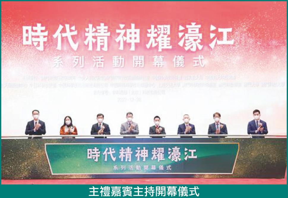 【本報訊】“時代精神耀濠江”系列活動開幕儀式於2022年12月28日在中國與葡語國家商貿合作服務平台綜合體舉行。開幕儀式由教育及青年發展局副局長丁少雄、中央人民政府駐澳門特別行政區聯絡辦公室經濟部處長劉暉、中國科協全國委員會委員、澳門科學技術協進會會長崔世平、上海交通大學黨委常委、宣傳部部長胡昊、澳門科技大學校長李行偉、澳門大學校長辦公室主任汪淇、澳門科技總會會長賀建東、澳門科學館館長邵漢彬主禮。