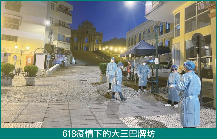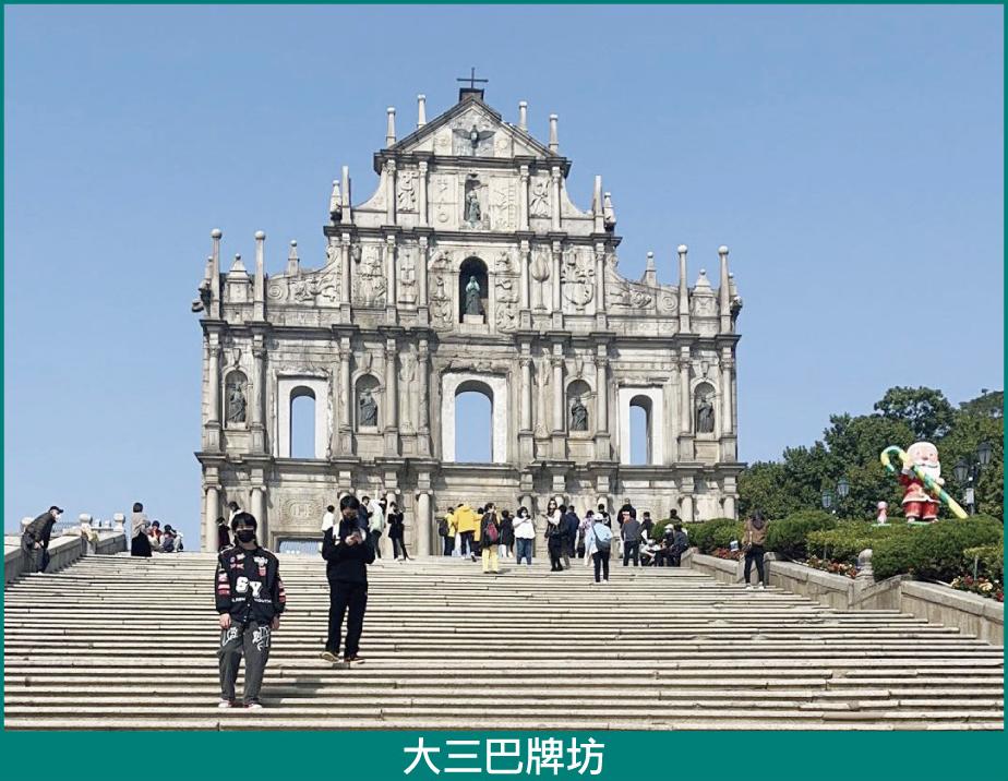惟好景不長,“618”疫情打破了澳門的興旺,澳門瞬即陷入了如“死城”般的狀態,冷冷清清。當時的大三巴遊客“清零”,轉而換成了排隊上利瑪竇中學做全民核酸的人群,以及在大熱天時下,穿著白袍維持秩序的志願者。幸而澳門的抗疫工作雷厲風行,“618”疫情很快便得到了緩解,趕上暑假的尾班車,大三巴牌坊又回復了些許生氣。