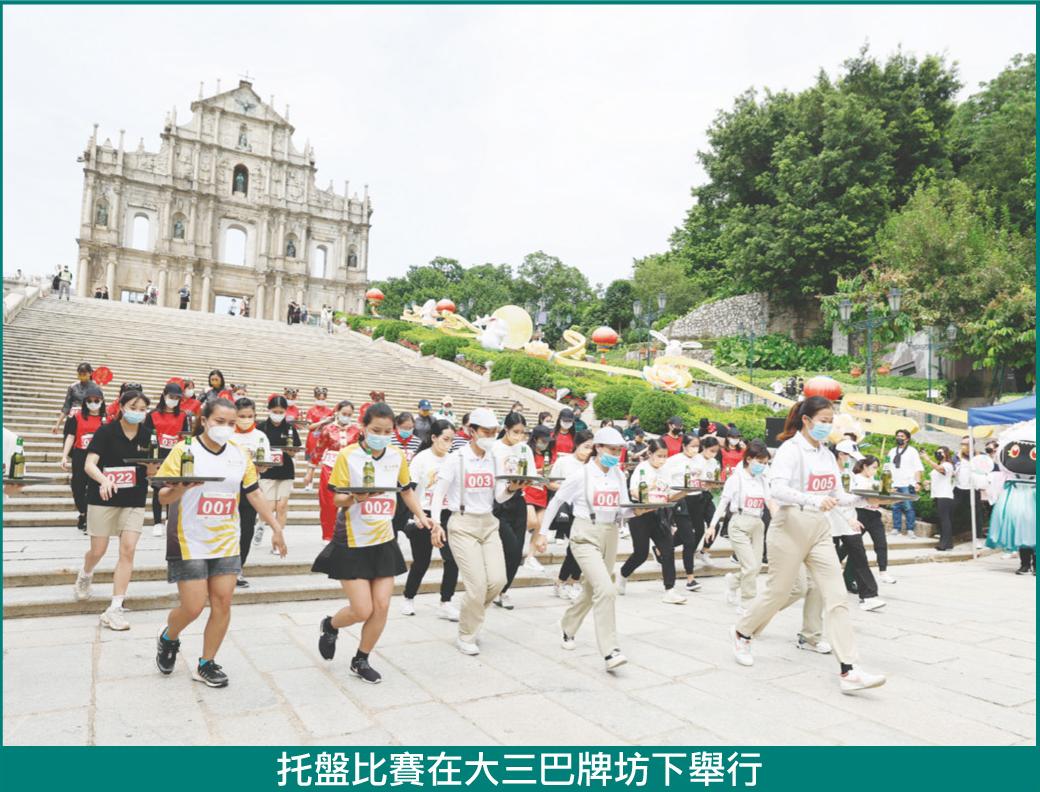每年9月27日是“世界旅遊日”。旅遊局當日會秉持傳統為業界舉辦別開生面的托盤比賽,與澳門居民和旅客共同慶祝此項一年一度的全球性旅遊盛事。一眾參賽者,手持載有一瓶“澳門啤酒”的托盤從大三巴牌坊出發,穿梭“澳門歷史城區”街道,盡全力以最快速度將啤酒安全送達終點站議事亭前地,氣氛緊張刺激,吸引沿途遊人駐足觀看。