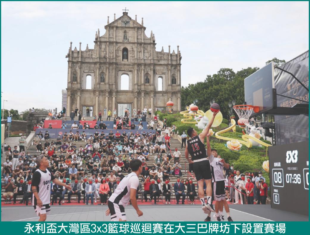 到了10月,《永利盃 - 大灣區3x3籃球巡迴賽》在本澳的著名經典展開一連七日的激烈賽事,大三巴牌坊也是其中一處比賽場地。參賽隊伍在比賽時;觀賽的旅客及市民在感受街頭籃球的活力和激情時,也能乘機感受大三巴牌坊作為世遺景點的魅力。