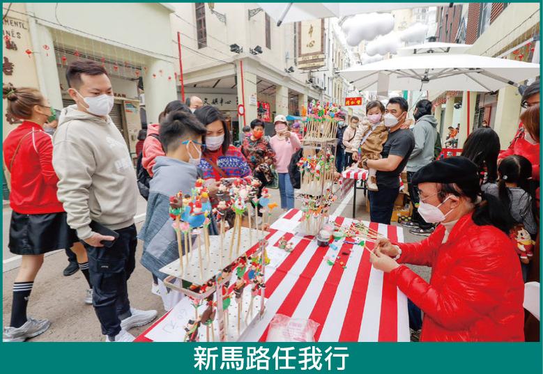 不同的演出隊伍參與步行區演出活動,共同營造街區熱鬧氣氛,包括治安警察局銀樂隊獻奏樂曲、各式各樣喜氣洋洋的藝遊人音樂演出、歡樂的街頭魔法表演等,向市民旅客送上節日祝福;由多所旅遊綜合體輪番帶來的幸運財神賀年環節,場面熱鬧;澳門美術協會組織多位本地藝術家到現場為途人繪製肖像畫,以筆觸記錄歡欣時刻;本澳非遺清單項目龍鬚糖製作技藝、麵塑技藝的展攤,以及多個精選的文創商品、咖啡、輕食及本地特式飲食攤位亦深受歡迎,銷情可喜。