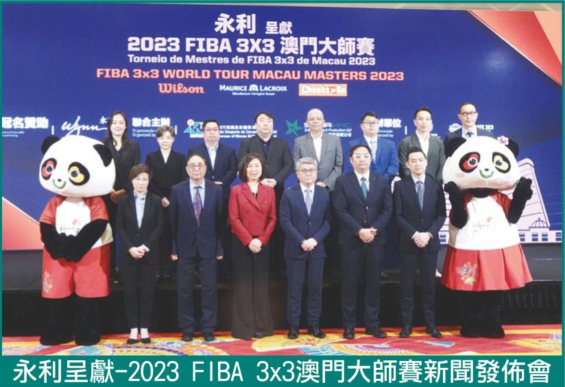 由體育局及澳門星娛樂制作有限公司聯合主辦,中國澳門籃球總會及絕對三對三有限公司協辦,永利渡假村(澳門)股份有限公司冠名贊助的“2023 FIBA 3x3澳門大師賽”新聞發佈會3日下午3時假永利皇宮宴會廳舉行。澳門體育局局長潘永權、澳門星娛樂制作有限公司行政總裁老傑龍、中國澳門籃球總會理事長胡松輝及永利渡假村(澳門)股份有限公司總裁兼常務董事陳志玲主持,體育局副局長劉楚遠、林蓮嬌以及體育委員等出席。