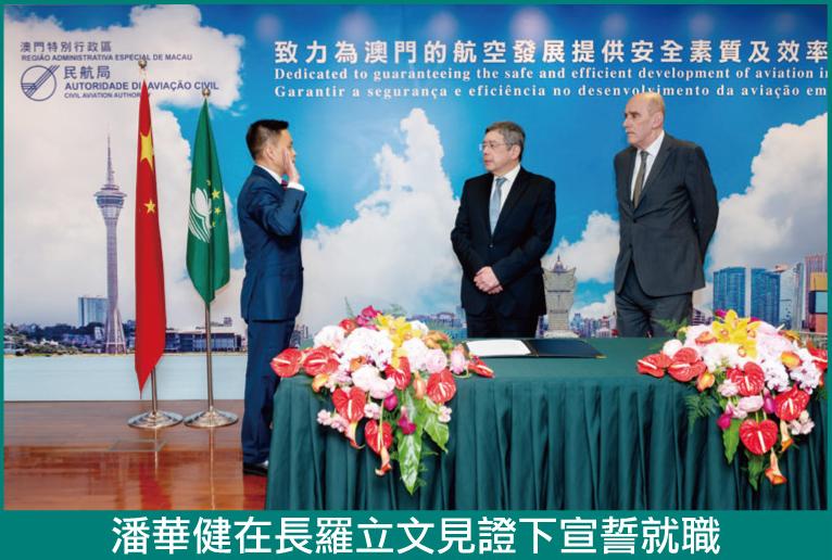 民航局局長潘華健在運輸工務司司長羅立文見證下宣誓就職。羅立文寄語潘華健在接受新崗位的挑戰時必須迎難而上,繼續履行民航局的安全監督使命,並且多與業界溝通,帶領澳門民航業進入後疫情的新里程。