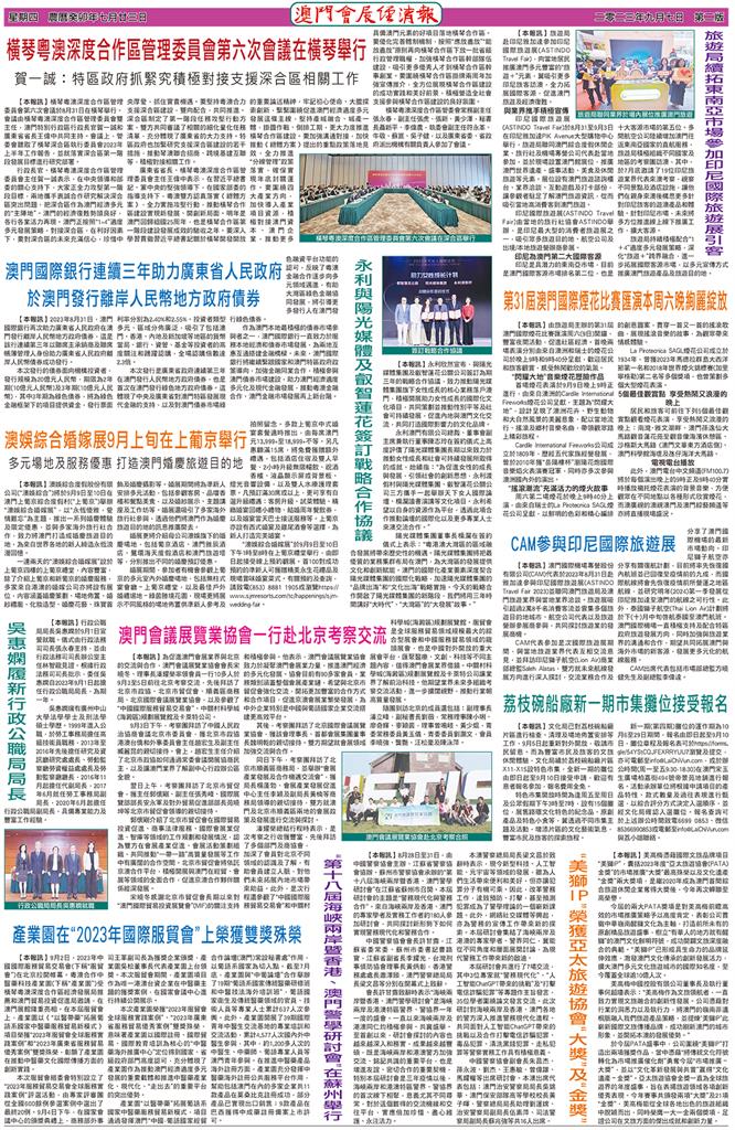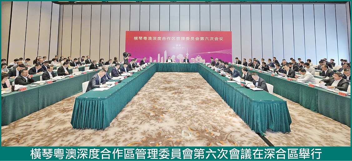 【本報訊】橫琴粵澳深度合作區管理委員會第六次會議於8月31日在橫琴舉行。會議由橫琴粵澳深度合作區管理委員會雙主任,澳門特別行政區行政長官賀一誠和廣東省省長王偉中共同主持。會議上,管委會聽取了橫琴深合區執行委員會2023年上半年工作報告,並就落實深合區第一階段發展目標進行研究部署。