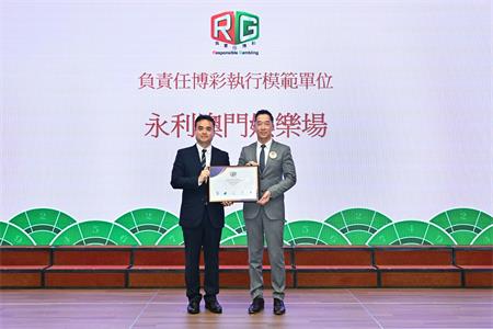 永利獲評為「負責任博彩執行模範單位」