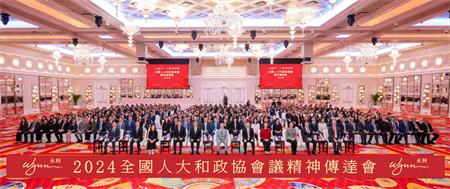 【本報訊】四屆全國人民代表大會第二次會議及中國人民政治協商會議第十四屆全國委員會第二次會議(下稱“兩會”)早前於北京圓滿舉行。為了讓團隊成員更深入領會今年兩會的精神,永利於3月22日假永利皇宮舉辦「2024全國人大和政協會議精神傳達會」,並十分榮幸邀請到全國人大常委、澳門特別行政區立法會主席高開賢先生;全國政協常委、澳門特別行政區立法會議員何潤生先生;全國人大代表何敬麟先生;以及全國政協委員、澳門行政會委員李從正先生擔任主講嘉賓,介紹今年兩會的整體概況和重點內容,讓永利團隊成員深入瞭解國家形勢及地區發展的最新動態。同時,永利亦非常榮幸邀請到澳區省級政協委員聯誼會為活動擔任指導單位。
