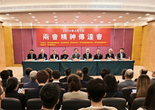 劉藝良團長首先介紹了澳門代表團參加大會的基本情況,強調澳門十二位代表認真履職,審議各項報告、議案、草案,積極發表意見建議,就國家高質量發展、琴澳更深入合作、澳門產業多元等議題提交建議九十六份。在介紹《政府工作報告》時,他表示過去一年在內外錯綜複雜的環境下國家取得如此成就,感到非常自豪,並對下一步發展充滿底氣和信心,並結合《政府工作報告》的有關精神對2024年我國會展業發展展望和澳門會展業發展進行了分享。他指出,展會經濟作為推動內外貿經濟的重要抓手被廣泛重視,要穩住外資外貿基本盤,推動外貿提質增效,尤其強調要辦好各大重要展會,包括進博會、廣交會、服貿會等。2024年我國展會經濟前景廣闊,擁有廣泛機遇,希望澳門會展業界緊抓機遇、發揮澳門特色優勢、推動會展業升級創新,推動澳門會展業繼續做大做強,為澳門經濟適度多元發展做貢獻。